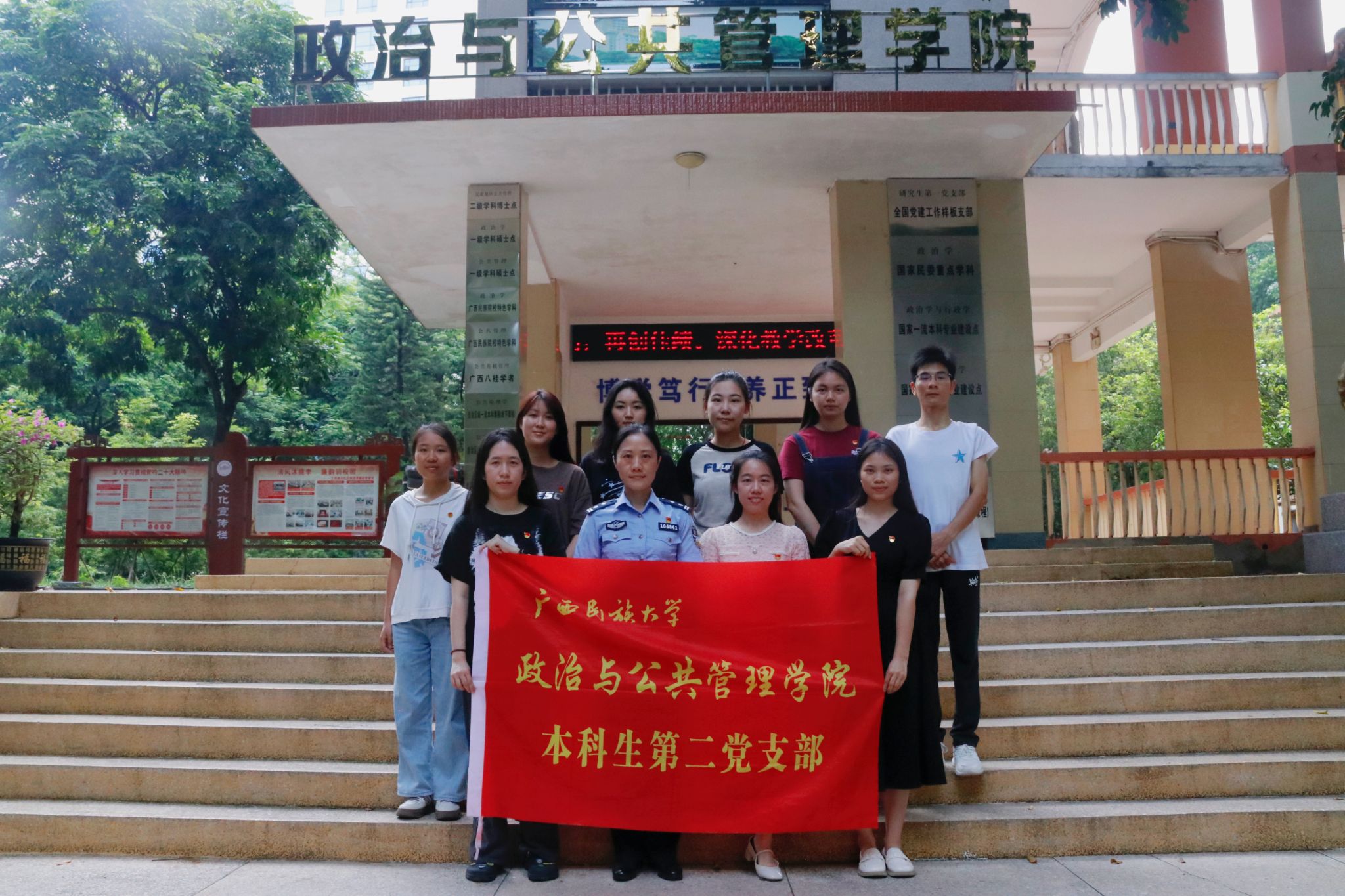 4月26日下午,南宁市公安局西乡塘分局反诈中心民警、我院校园安全与法制教育辅导员杨俭警官到我院洽谈合作。学院党委副书记黄琳富,团委书记农植媚,辅导员姚远琪、陈曦及学生干部代表参加交流。