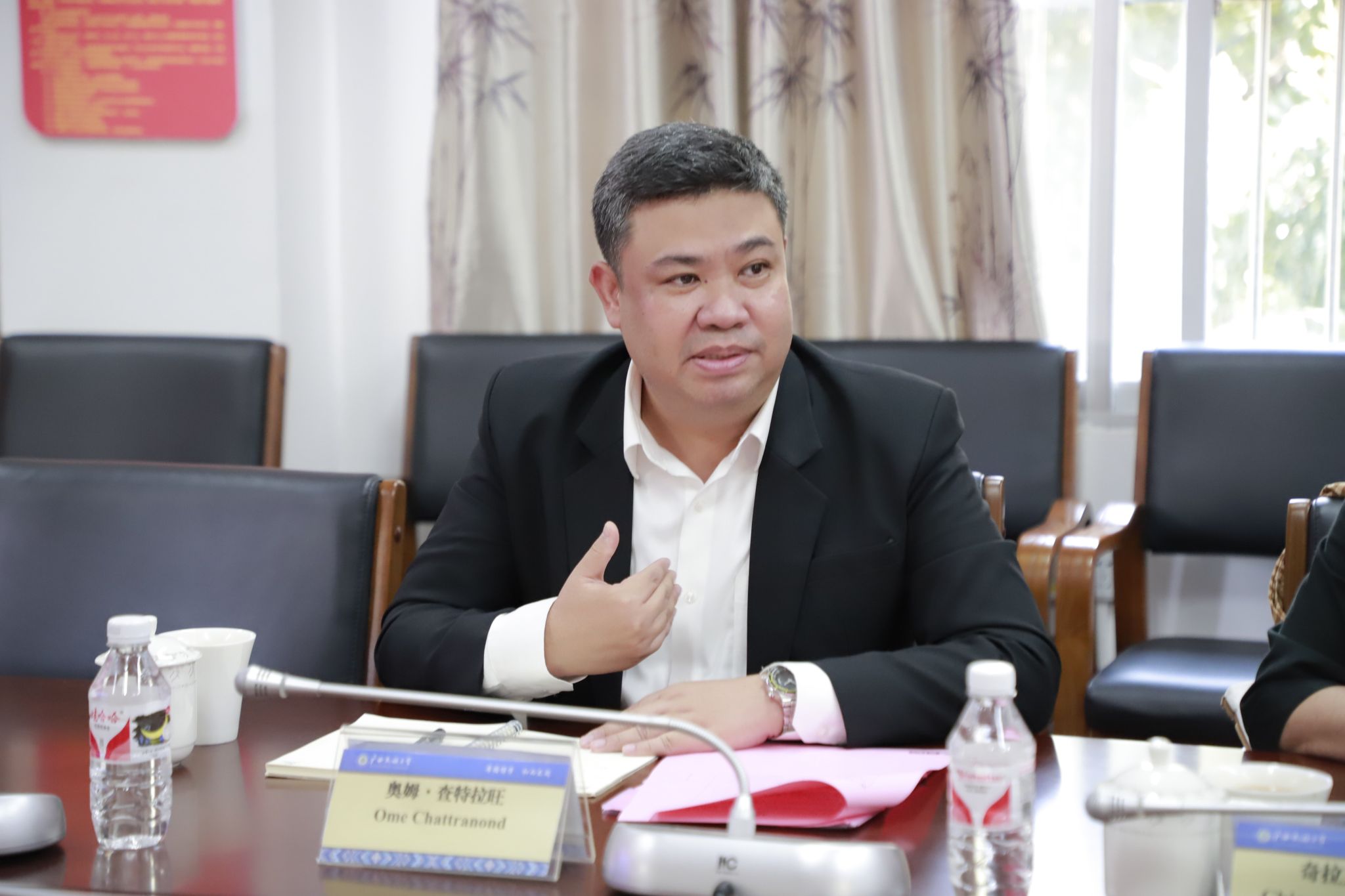 奥姆•查特拉旺对我院的热情接待表示感谢,随后介绍了玛哈沙拉坎大学政治与公共管理学院的办学情况,表达了与我院共建友好合作关系的愿景。他表示,玛哈沙拉坎大学政治与公共管理学院构建了多层次人才培养体系,专业体系完善,学术资源丰富,诚挚邀请我院师生赴泰交流深造。他希望双方相互支持,为师生交流提供便利条件,推动两院在人才培养、学术交流、科学研究等方面开展全方位合作。
