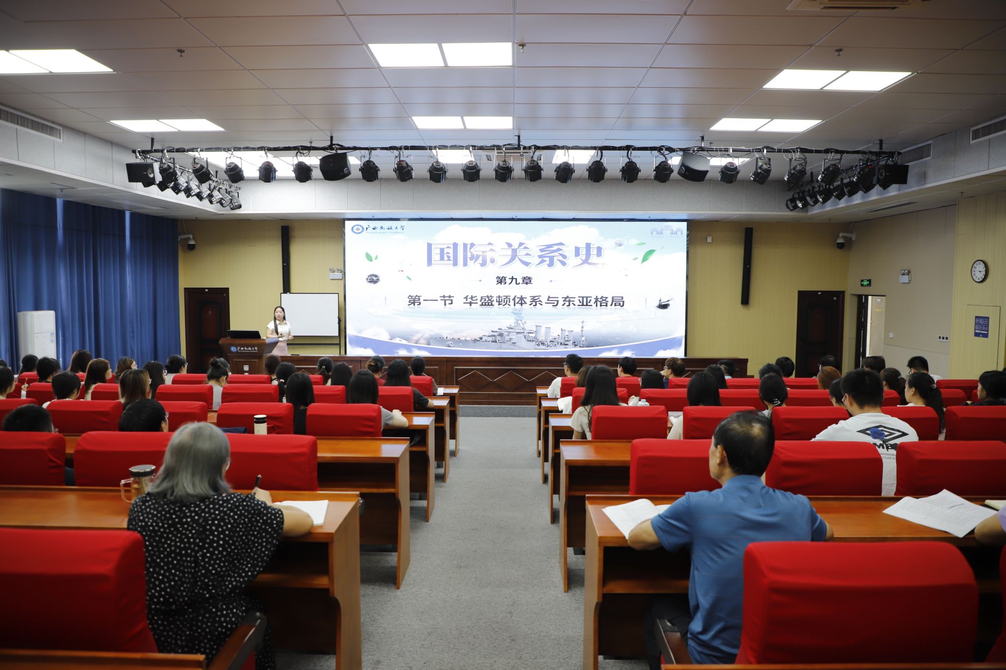 10月11日下午,广西民族大学“教学领航”示范课第十二场在相思湖校区图书馆学术交流厅举行。本次示范课由政治与公共管理学院政治系教师赵师苇博士为2024级国际事务与国际关系1班学生讲授《国际关系史》第九章第一节《华盛顿体系与东亚格局》。教务处/教发中心相关人员、教学督导、政治与公共管理学院领导老师、各学院专任教师代表等到场观摩。