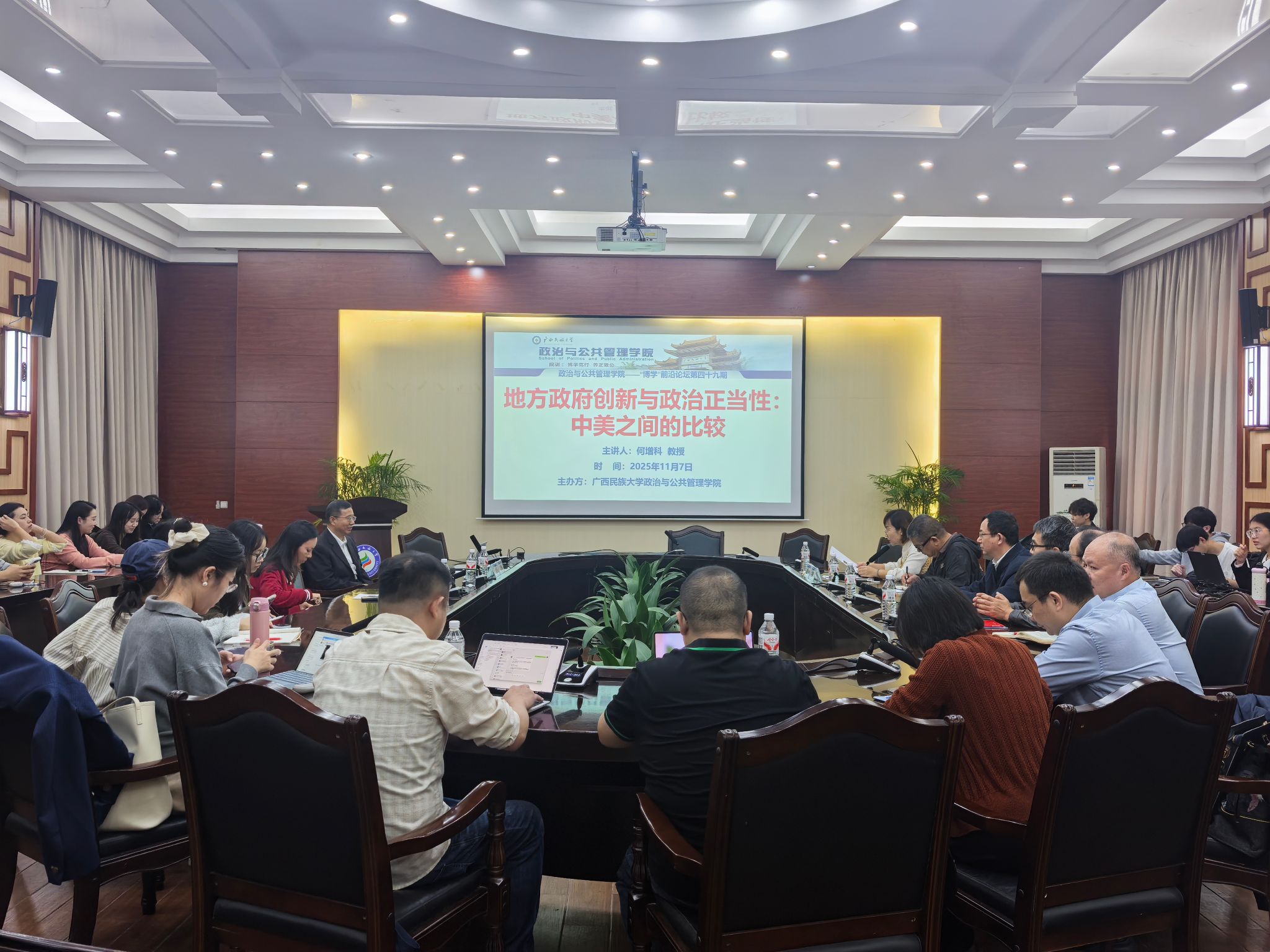 11月7日下午,北京大学二级教授、博士生导师何增科教授应邀莅临我校,作了题为《地方政府创新与政治正当性:中美之间的比较研究》的专题讲座。本次讲座由院长胡佳教授主持,我院师生代表参加讲座。
