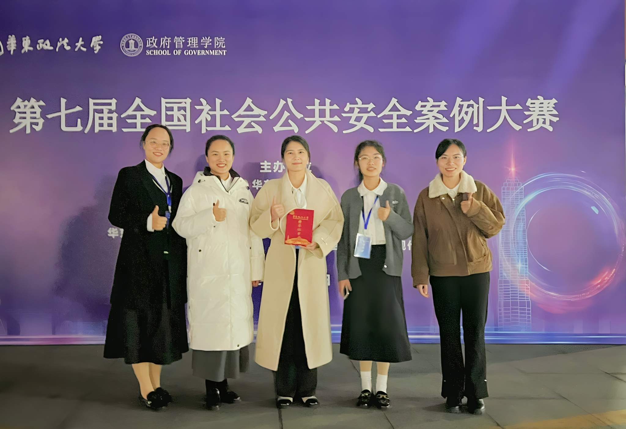 12月6日,由华东政法大学主办,华东政法大学教务处、华东政法大学研究生院、华东政法大学政府管理学院、华东政法大学MPA教育中心、新时代枫桥经验与中国式现代化研究院承办的“第七届全国社会公共安全案例大赛”决赛在华东政法大学松江校区举行。在胡佳教授、李晓昀副教授的指导下,我院以宁心妍、王洋洋、潘文欣、陆洋、蒙信组成的研究生代表队提交的案例分析报告《中越国门新“枫”景:广西边境涉外矛盾纠纷化解机制研究》经过多轮专家评审与现场答辩,最终脱颖而出,荣获本次大赛一等奖。