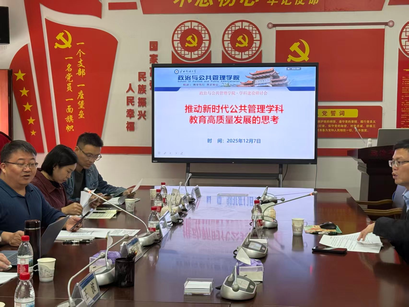 12月7日上午,我院“推动新时代公共管理学科建设高质量发展的思考”学科建设研讨会在博学楼304举行。此次研讨会邀请厦门大学公共事务学院/公共政策研究院教授、博士生导师吕志奎来指导,我院教授温顺生主持研讨会,我院李洪涛、王波、杨宇、张河雄等教师代表参加,共同探讨新时代背景下公共管理学科建设如何高质量发展之路。