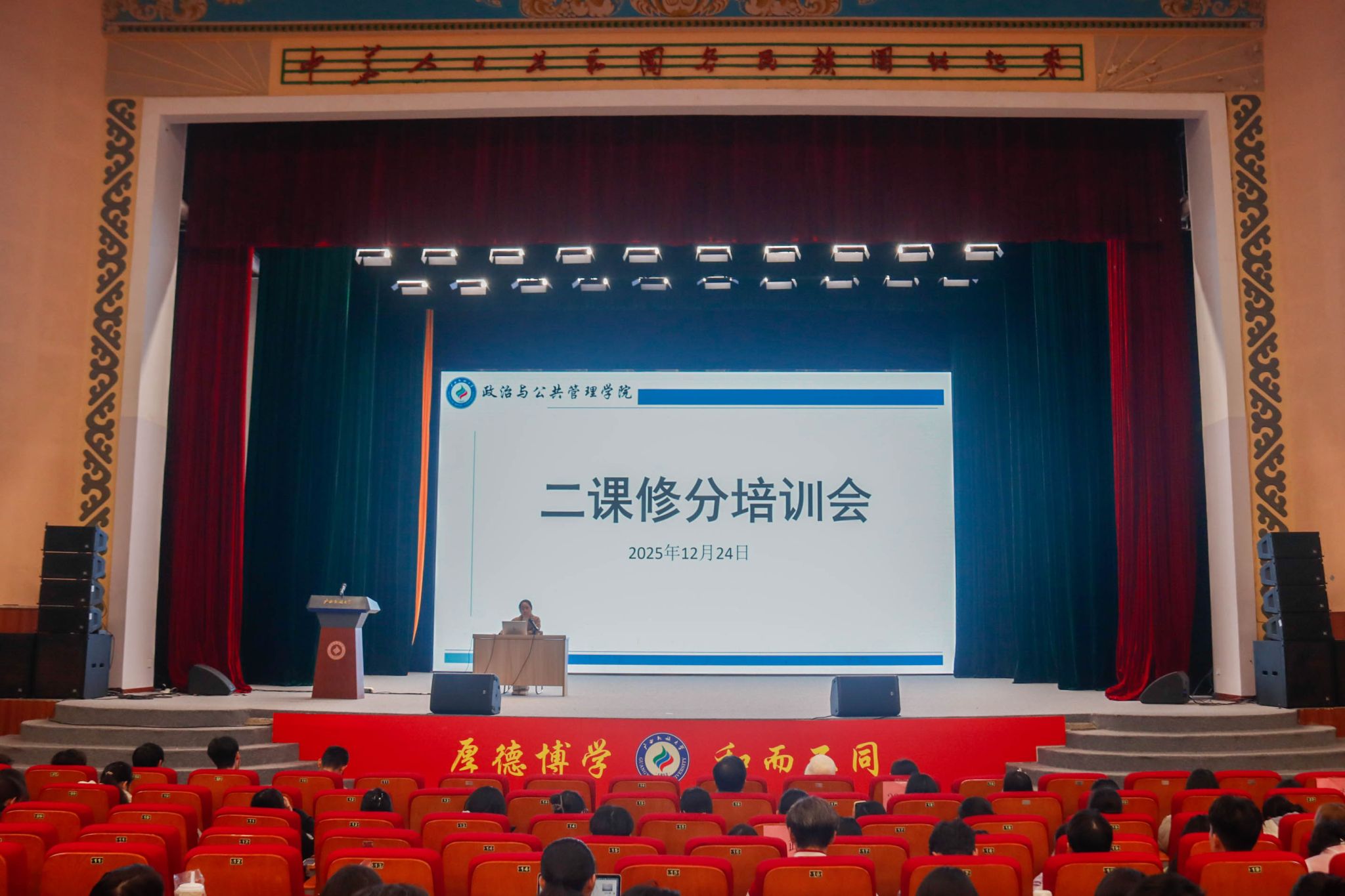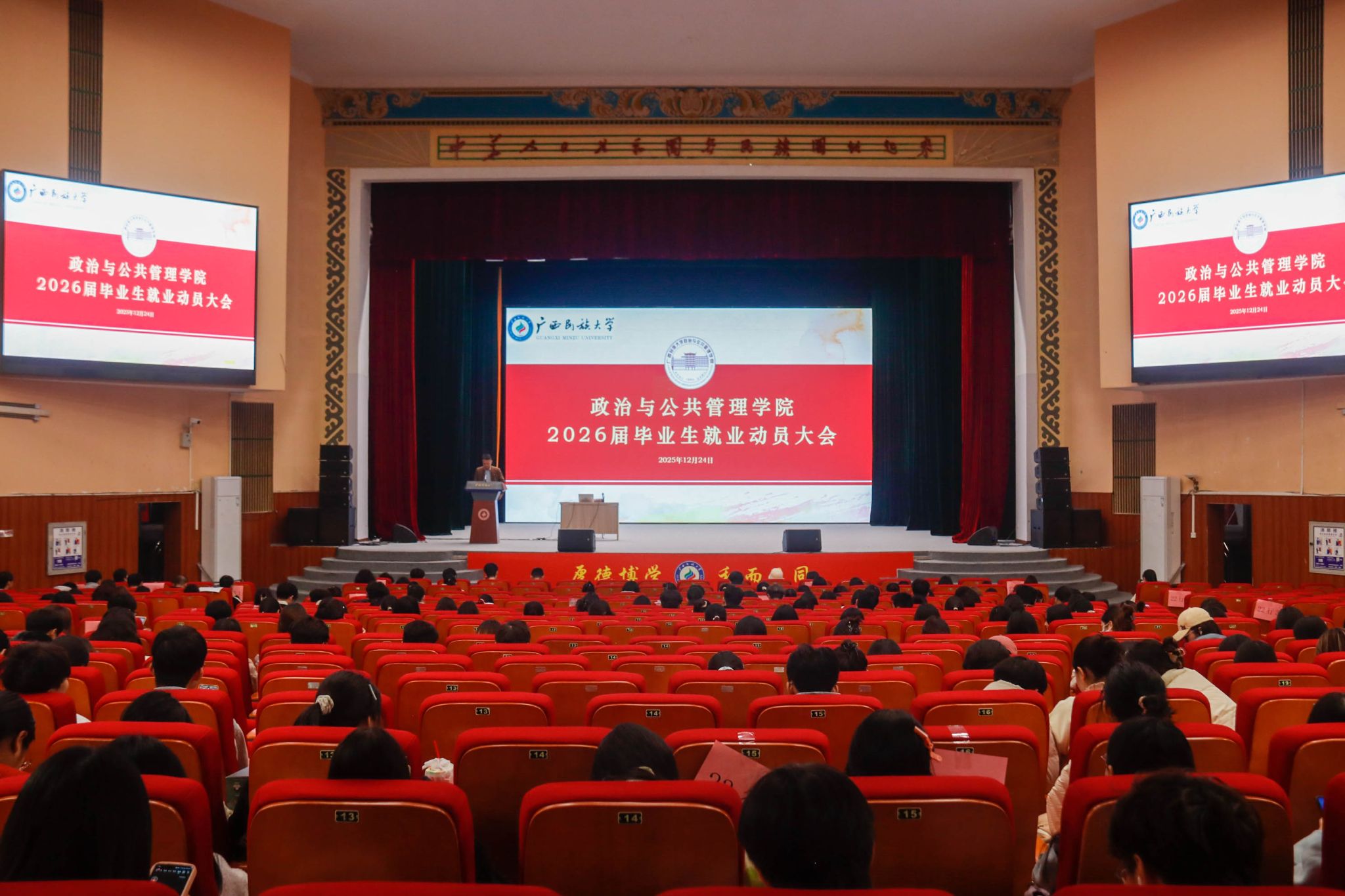 12月24日晚,政治与公共管理学院于大礼堂召开2026届毕业生就业动员大会,2022级、2023级全体同学参加。会议由辅导员陈曦主持。