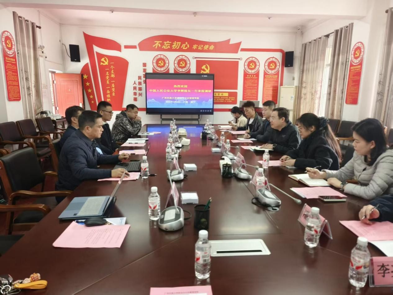 为深化校际合作,互学互鉴先进经验,共同探讨专业布局调整和助力国家安全学科建设,2026年2月2日上午,中国人民公安大学研究生院院长李辉带领教师团队来访我院,双方于相思湖校区博学楼304会议室举行交流座谈会,政管学院公共管理系主任李洪涛、副主任陈周鹏、行政管理专业负责人叶兴艺参与座谈,管理学院院长高斌应邀出席,会议由副院长李松有主持。