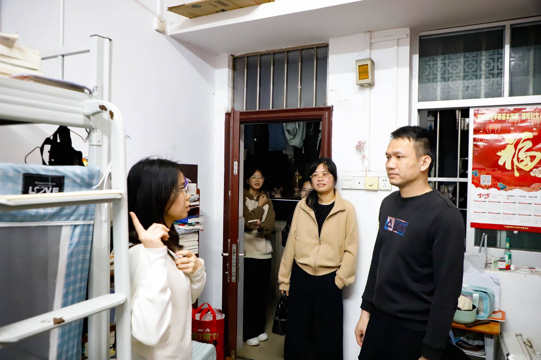 为深入了解新学期学生返校后的学习生活状况,传递学院关怀,3月8日晚,政治与公共管理学院党委副书记覃国化、各班班主任、专职辅导员及学生干部代表,走进四坡、五坡学生宿舍,开展新学期学生宿舍走访慰问活动。