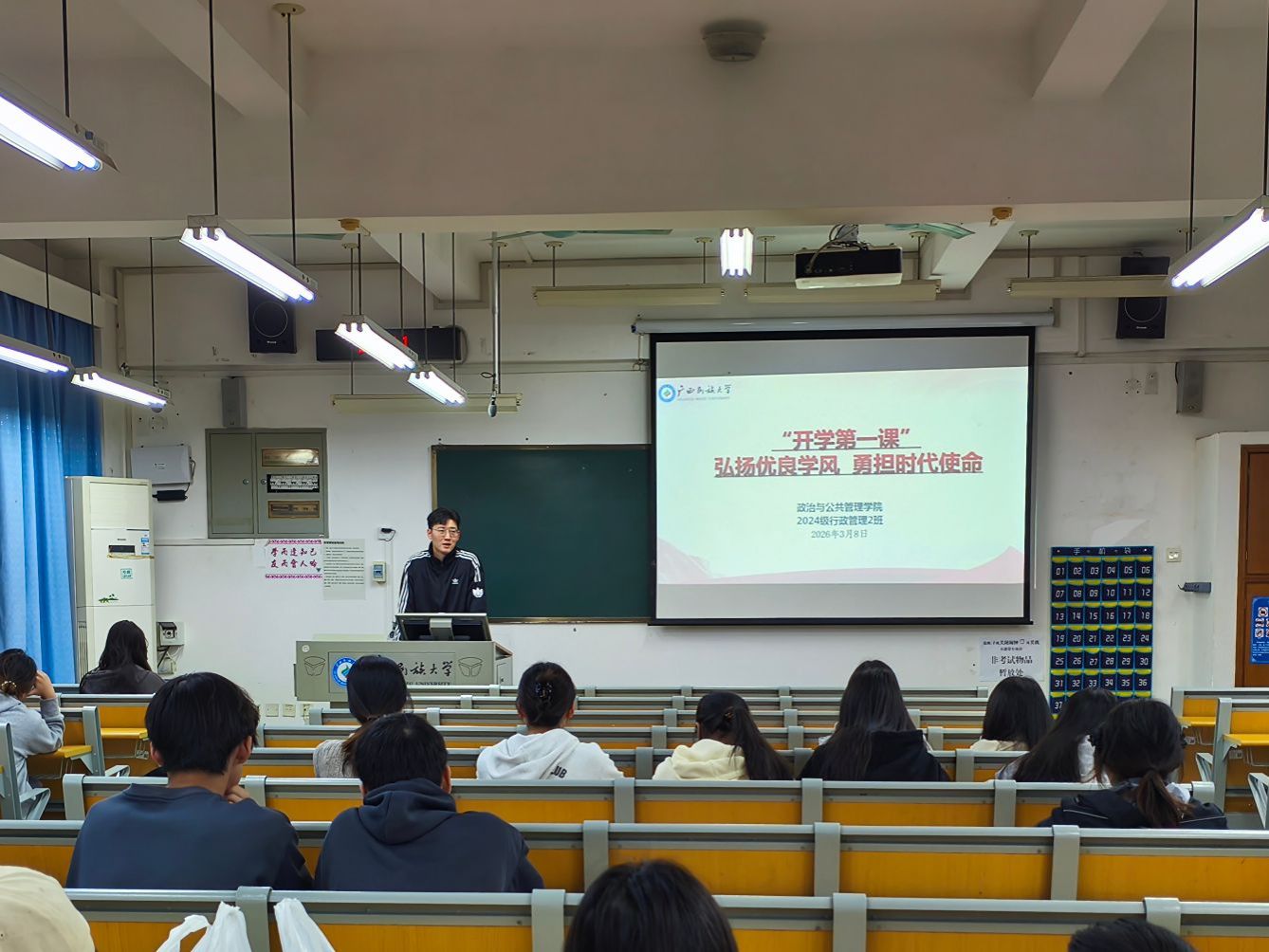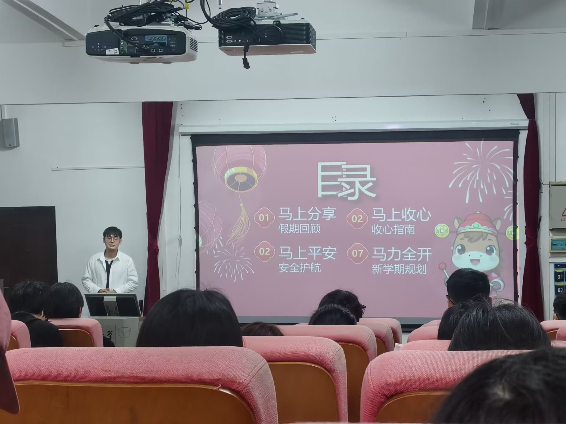 春风浩荡满目新,扬帆奋进正当时。3月8日,我院有序开展了2026年春季学期“开学第一课”主题班会活动。本次活动以“弘扬优良学风 勇担时代使命”为主题,旨在引导广大学生以崭新姿态迎接新学期,在思想淬炼与实践锻炼中成长成才。