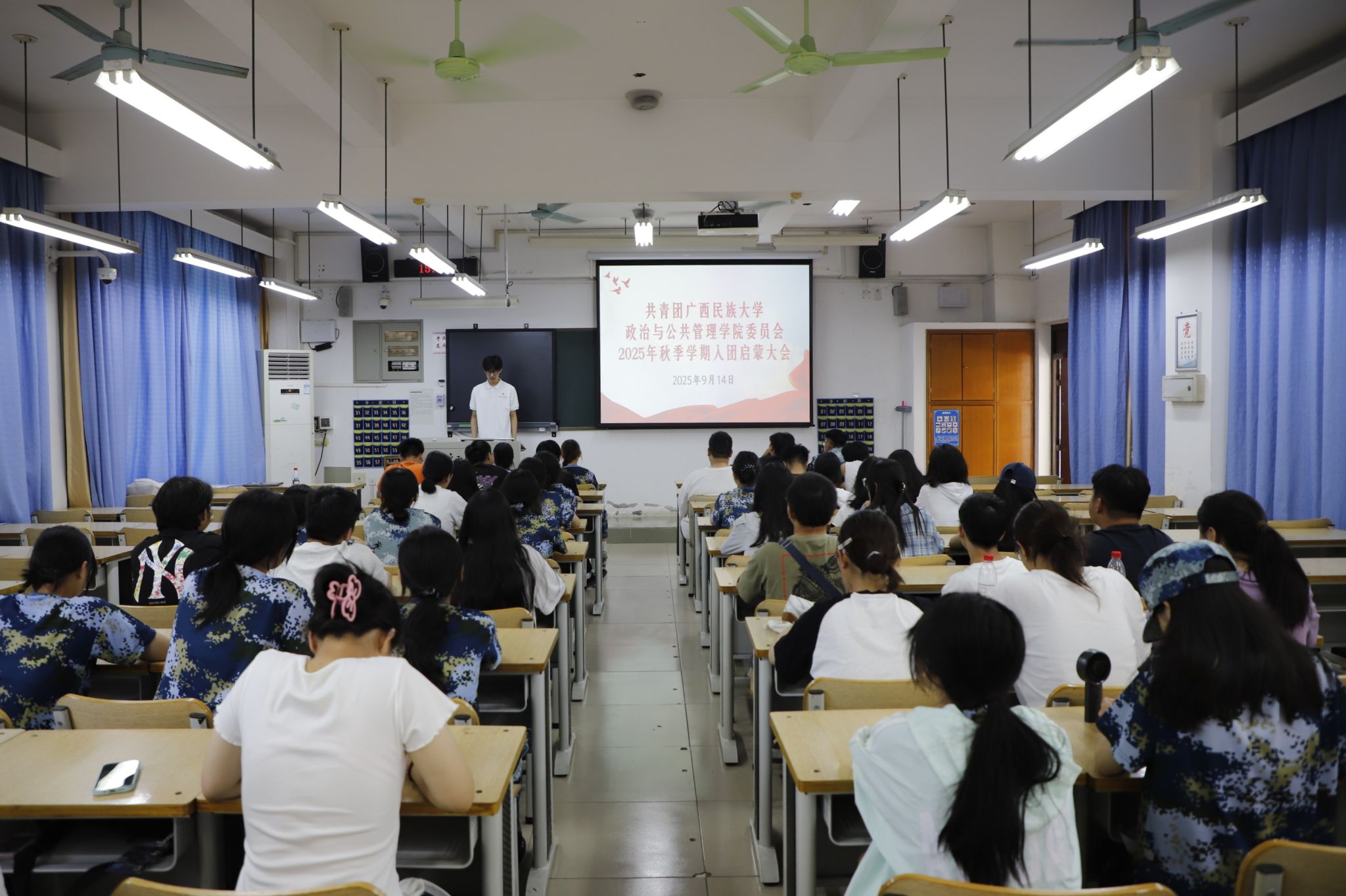 9月14日下午,我院2025级全体新生班级召开入团、入党启蒙教育大会。各党支部党员代表、共青团干部代表深入新生班级,为新生开展入团、入党启蒙教育。